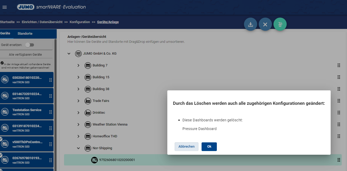 When deleting a device space, the user sees the direct reference to the dashboard used.