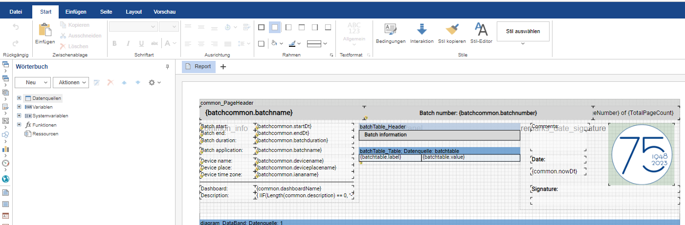 The design of the report template can be modified with the Designer to meet customer-specific requirements. For example, a company logo can be integrated using the import function.