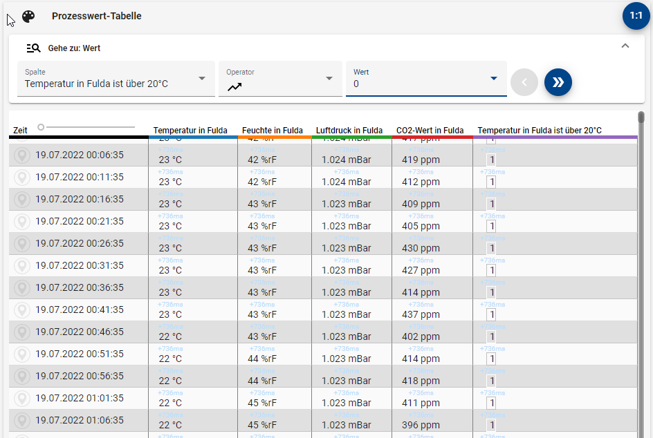 Using the go-to function, the user can jump to a value defined by the user within the process values table.