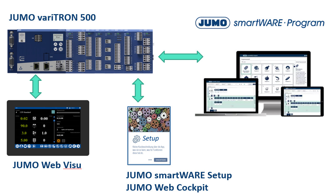All JUMO software components combined create the “Process Technology Template”, which can be used to easily create additional applications.