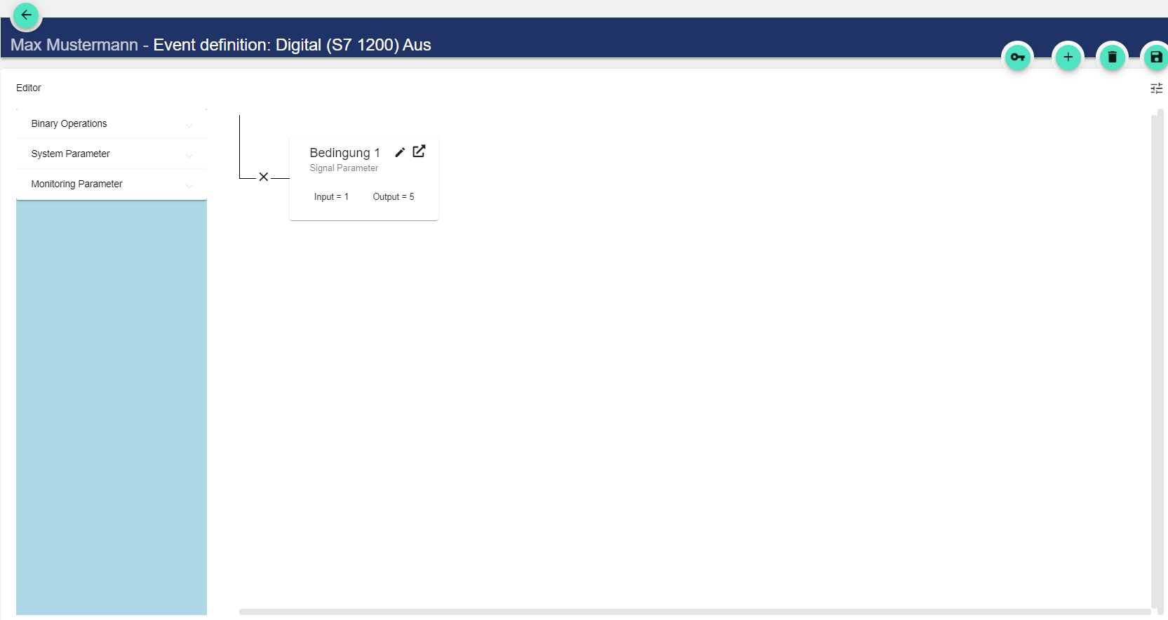 By selecting the "Event Definition" button, you can edit a Definition that was created earlier. A new Event Definition is created via the Plus button.