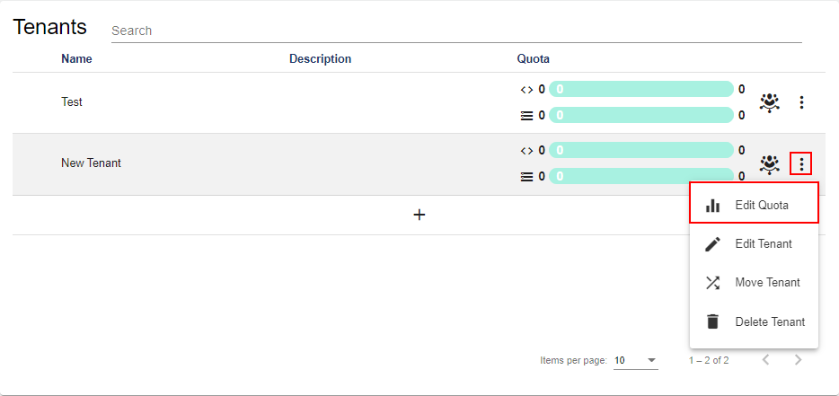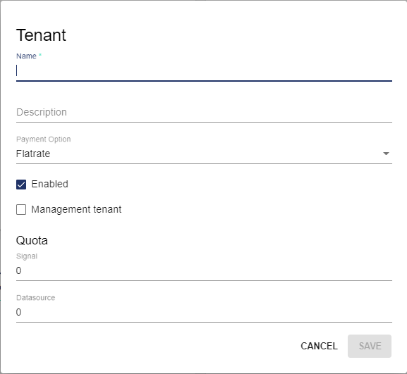 Quota | Specifies the maximum contingent of signals and data sources of the sub-client. |