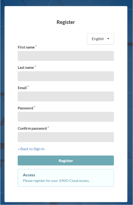 If an account has not yet been created, select the "Register" button. Once the next window has opened, fill in the required mandatory fields. Clicking the "Register" button again creates access to the smartWARE SCADA.