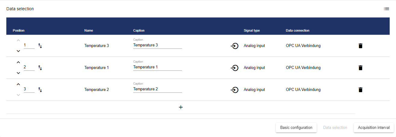 Adjust the manual input via the basic configuration. First of all, assign a suitable title and a "Previous value" to your manual input. This value determines how many previous values are displayed for digital signals. To retrieve the previous values, click the menu icon next to the digital signal of your choice. The header can be displayed by selecting the check box.