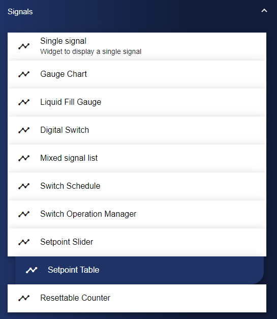 First of all, select the Setpoint Table widget from the Signals category.