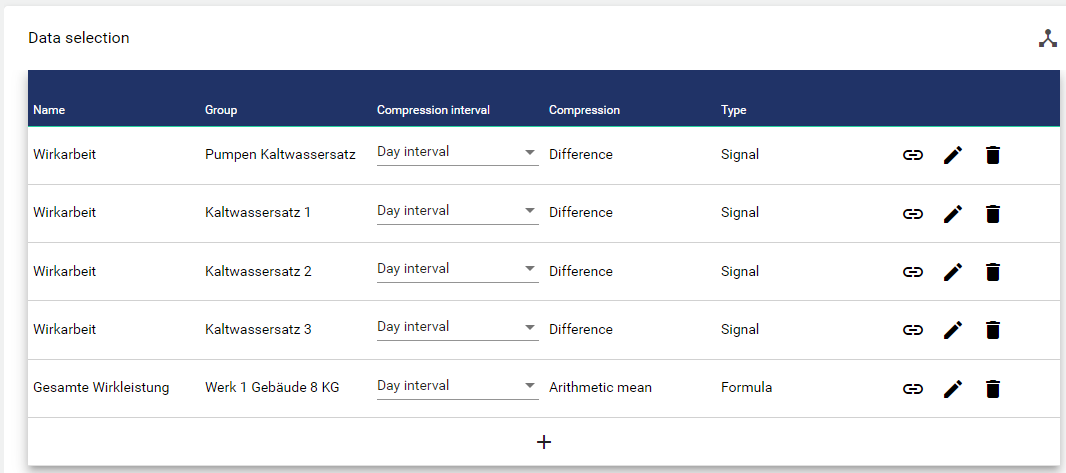 Clicking the Plus button opens the Entity-Select window. You can add signals that were created earlier. The checkboxes can be used to mark multiple signals and select them all simultaneously.