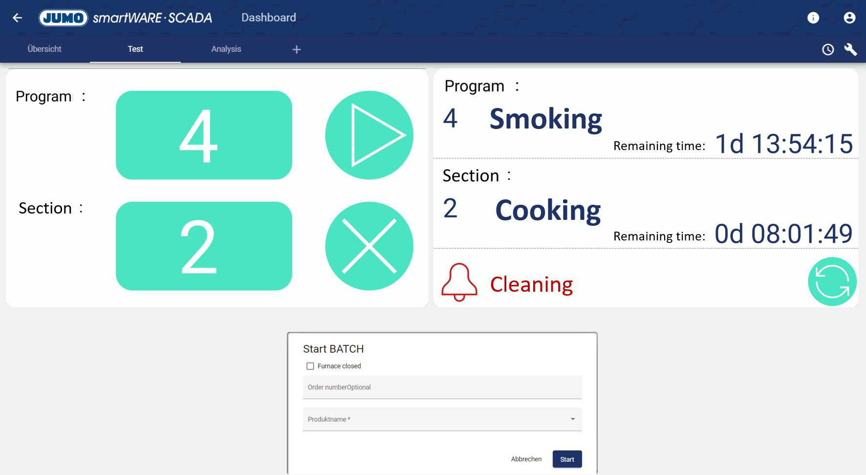 A program can be selected via the SCADA using the process image and only started when the batch data has been entered correctly in the "Start Batch" field.