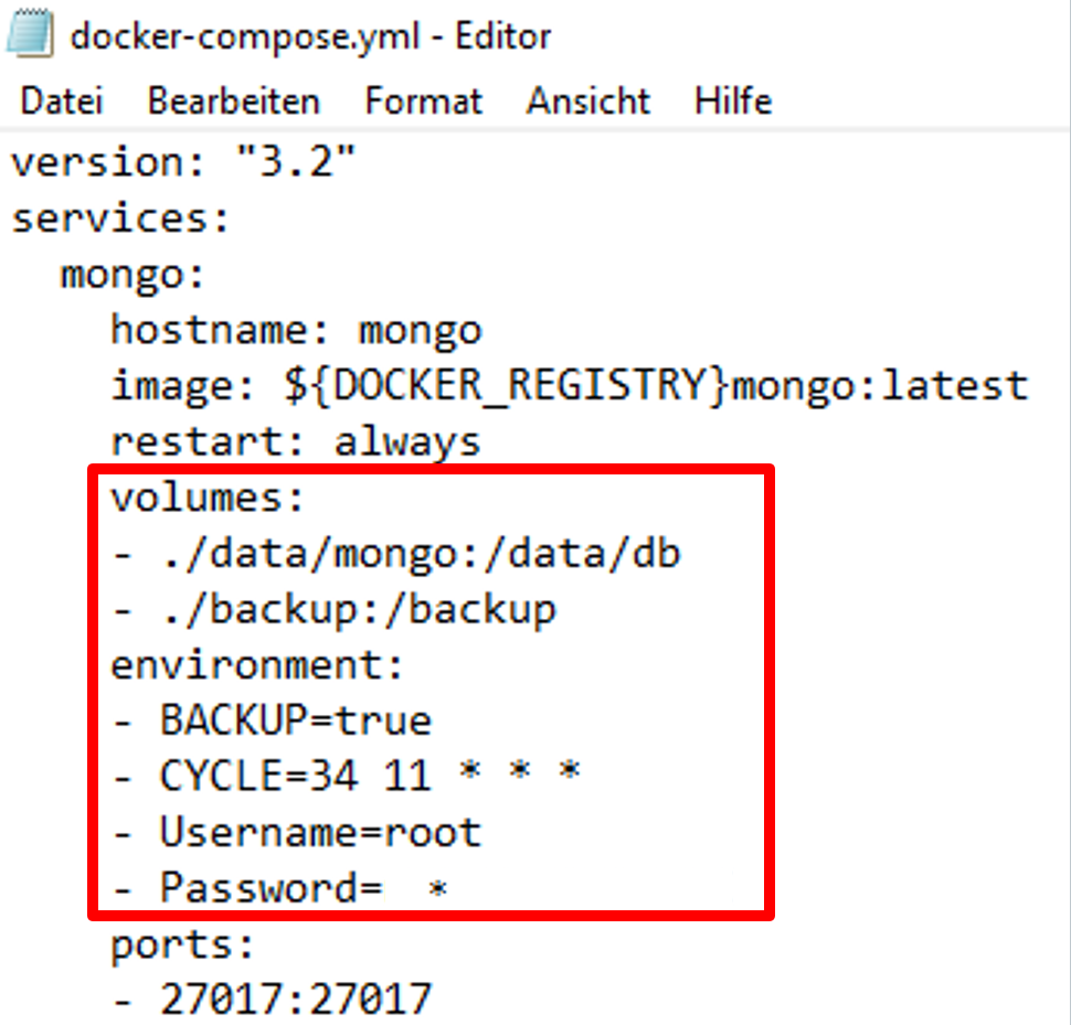 Optional: Restart of Mongo service with PowerShell or Linux Terminal command “docker-compose restart mongo” to activate changes