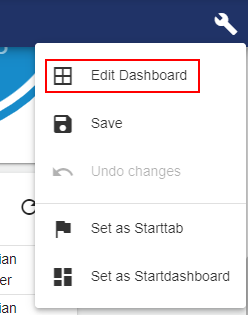 Any changes made to the visualization of the Dashboard or to the arrangement of the widgets must be saved for the changes to take effect. For this purpose, click on the three vertical points above one another and select the menu item: "Save".