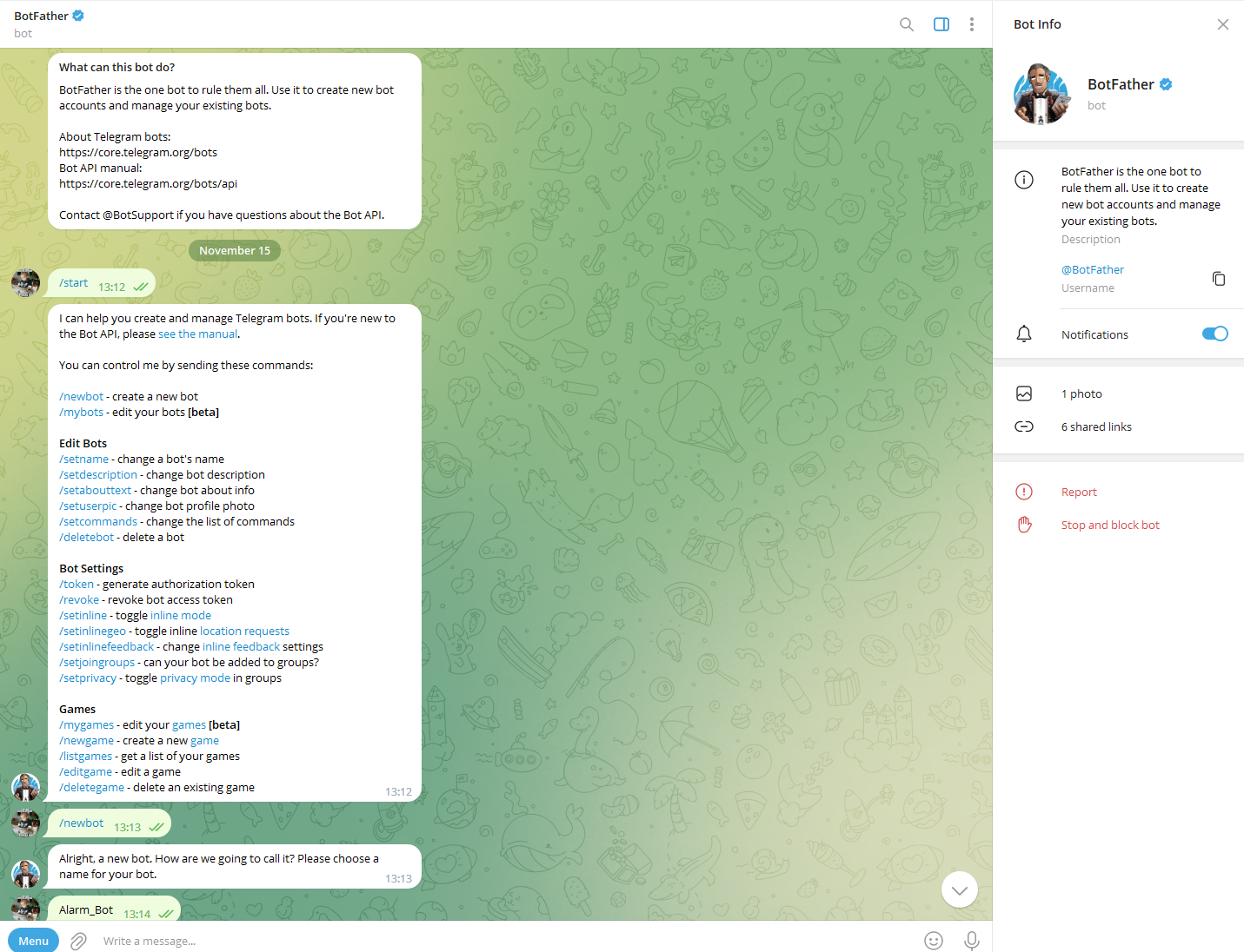 To create your own individuell alarm-bot on Telegram (incl. own logo and text), you need to contact the BotFather (@BotFather), which is essentially a bot used to create other bots. After the BotFather creates your Bot you will get a Bot-ID. You can enter this bot ID in our system to receive an alert from this bot.