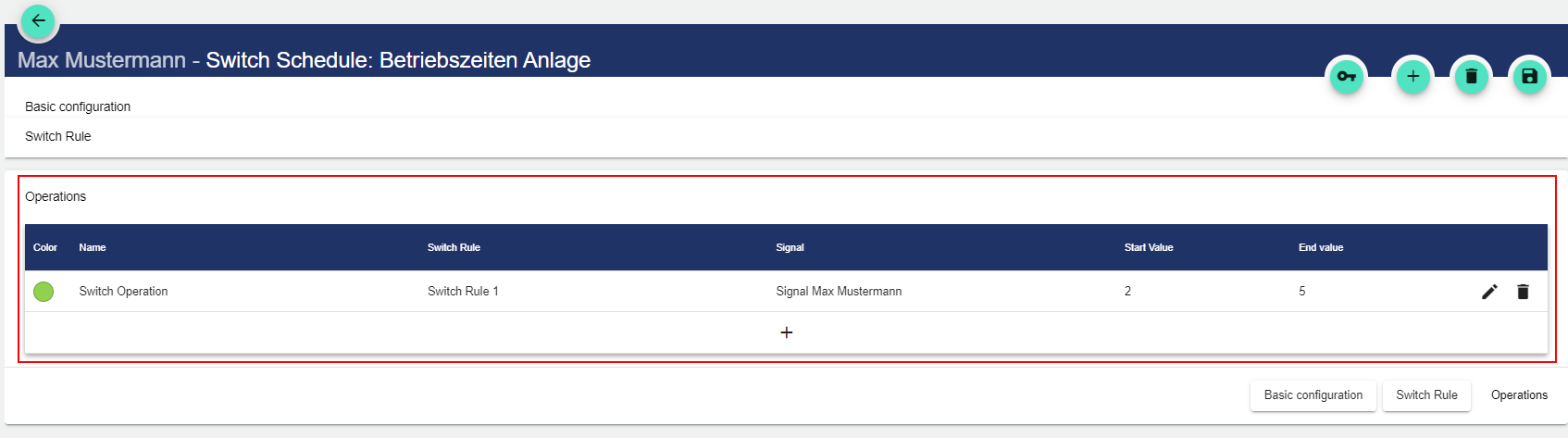 A new switching operation is created via the Plus button. Assign a name to the operation. In the "Switching Rule" field, you can select the previously created switching rule as a template.