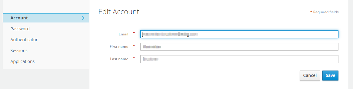 The e-mail address and user name can be changed via the "User Account" selection field.