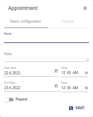 Next, the standby or date is configured in the Basic Configuration. You can schedule with and without repetition.