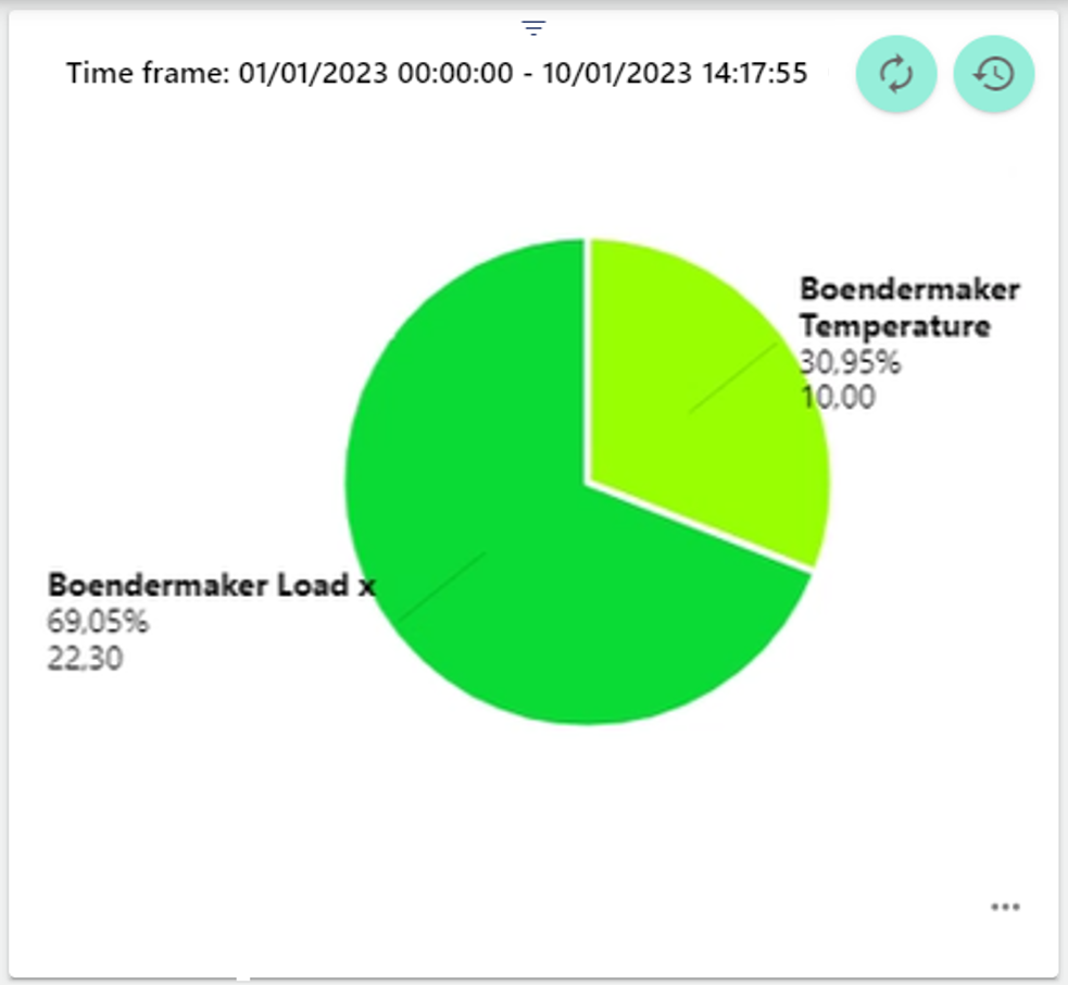 The Pie Chart widget shows in percentage terms how the individual signal values have behaved over the set period. To use a Pie Chart widget, you need an analog input signal.