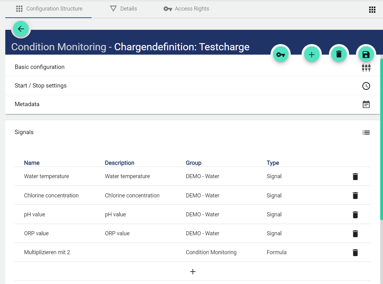 All signals or formulas added here are assigned to the batch during the run of a batch.