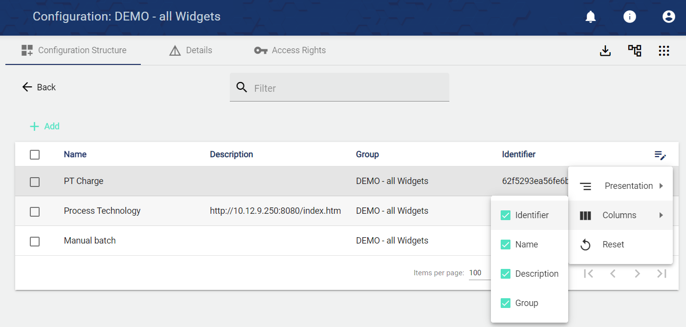 The script editor is used to enable the actual program flow. The programming language is JavaScript. The functionality of JavaScript (ES2022) is mostly available, a detailed list of what is supported can be found on: https://github.com/sebastienros/jint.