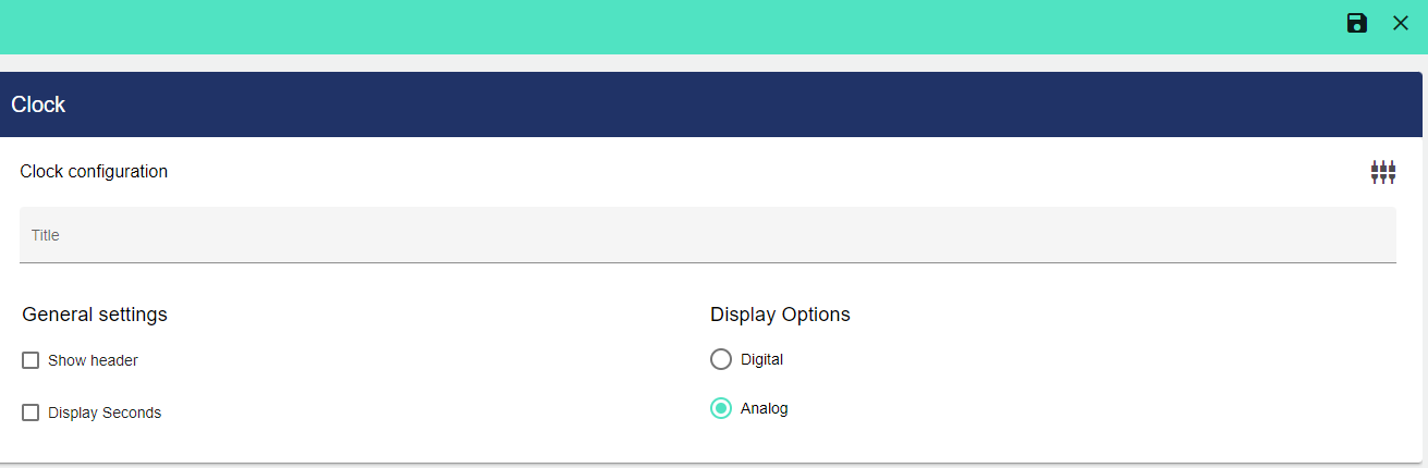 To discard the changes from an edited or new widget, click the "X" icon.