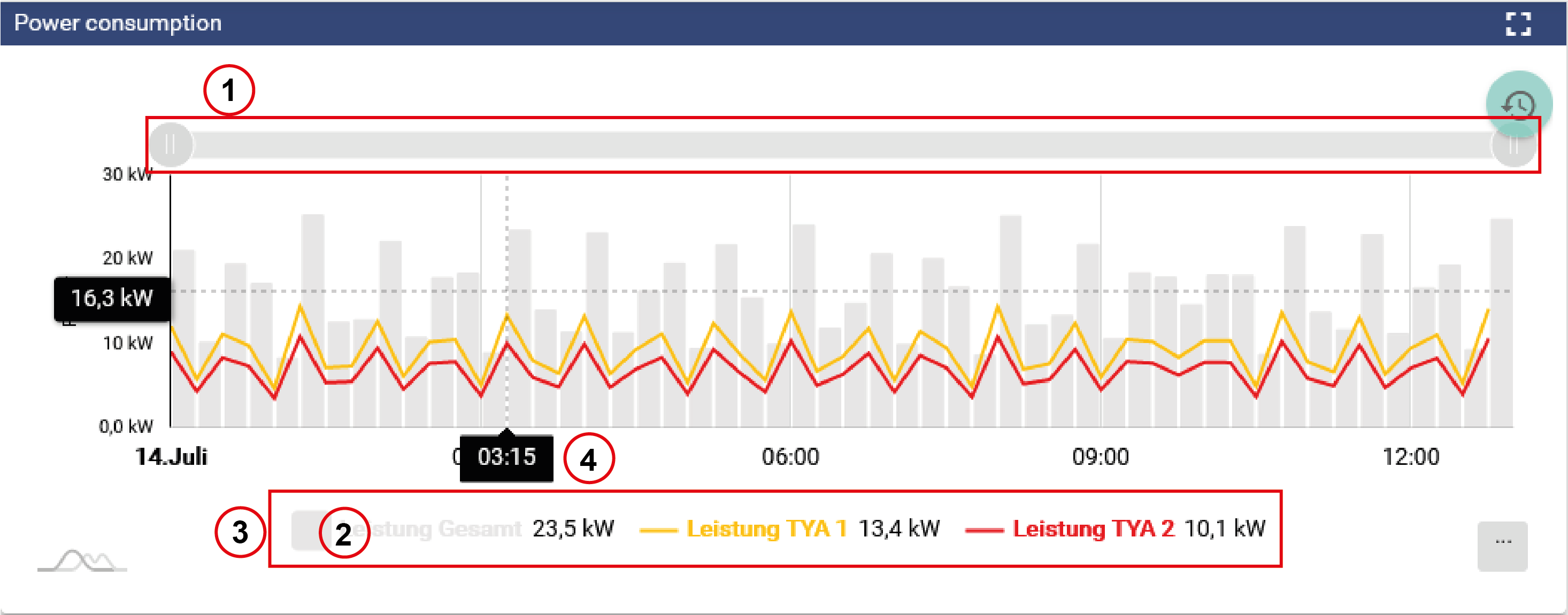 ![]() | Activation of the livemode. Then max. the last 24 h are displayed incl. current live data. |