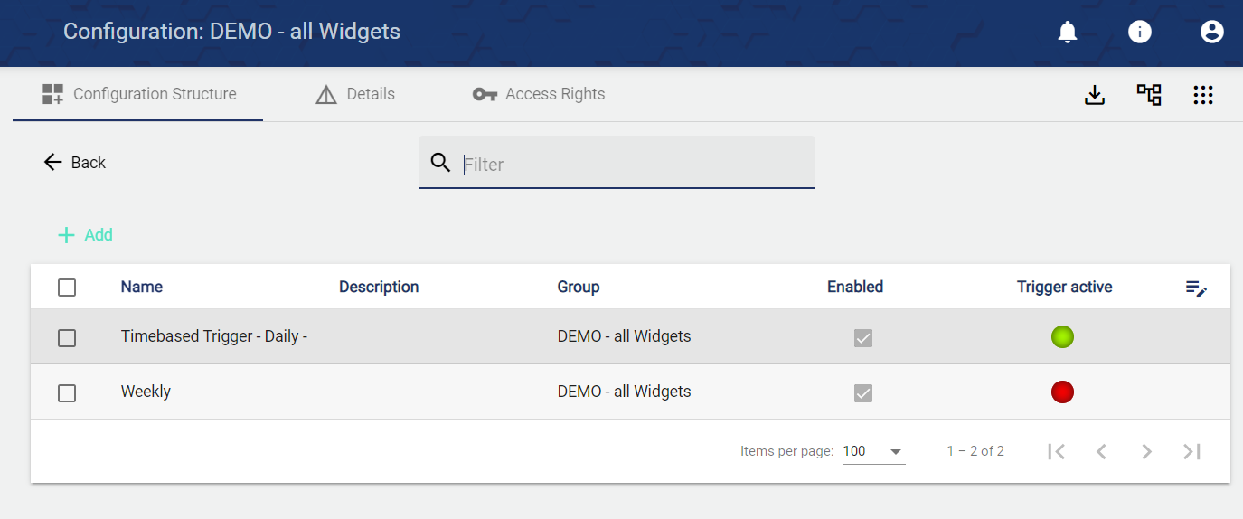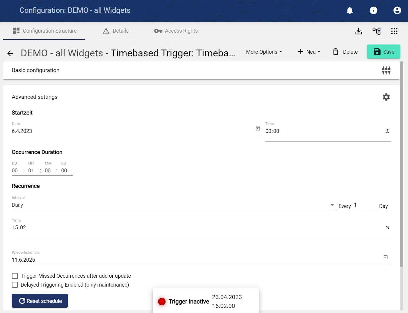10.) In the configuration of the Timebased Trigger, the activity status (event active or inactive) can now be identified quickly and easily.