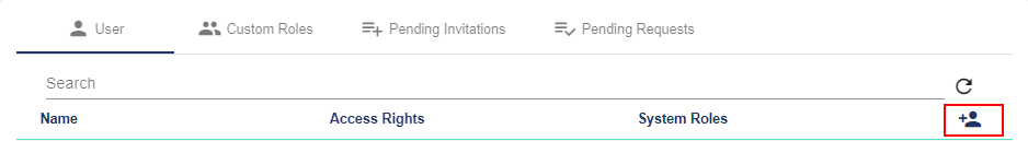 To invite a user or to add a tenant, click the "+" button (see above), the pop-up window below then opens. Suitable rights can be assigned to the user at the same time as the invitation. To do this, simply open the "Roles and Access Rights" area and click the "+". The invitation can then be sent. The invited user then receives a message via the user feed with a request to accept.