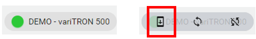 To send the Cloud Gateway configuration to variTRON, the "Signal" button can also be used. Here all connected Datasources are displayed in the upper right corner, by hovering over them, the user can quickly and easily interact with them.