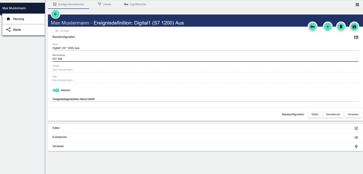 In the Basic Configuration you create the name and description and select the previously created Event Category via the Navigator.