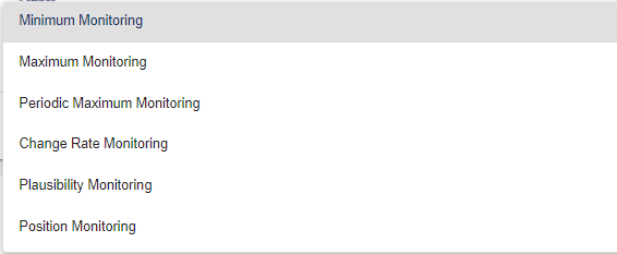 Plausibility Monitoring: The signal values (or formula values) from the selected "object" must remain in the selected "value interval type" so that no event or alarm is triggered. If the range (between min-max) is exceeded, this is triggered. This function ensures the verification of counters. Thus, failures of counters can be noticed more quickly.