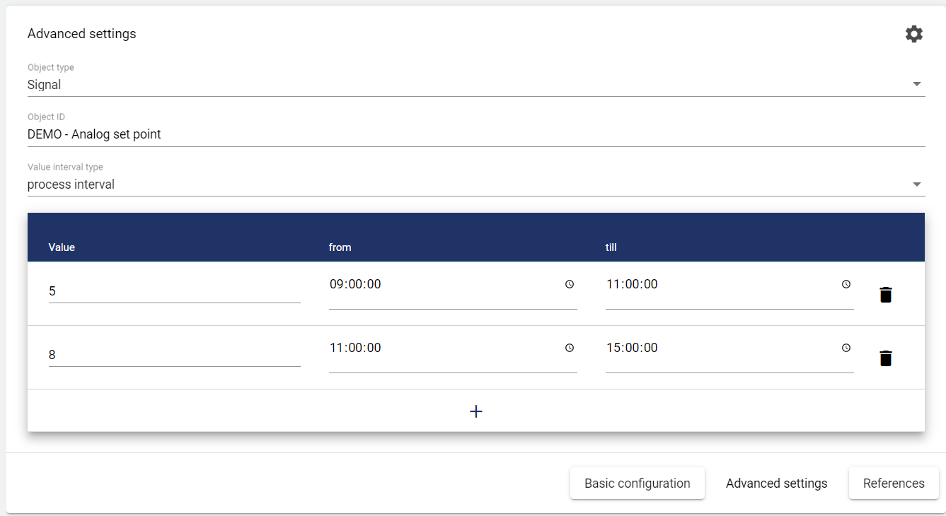 Process interval | The process interval corresponds to the interval set in the signal. |