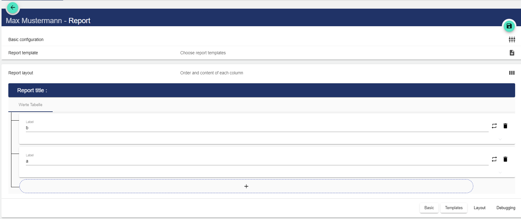 By selecting the "Report" button, you can edit a Report that was created earlier. A new Report is created via the Plus button.