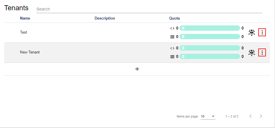 In this area, you can edit the maximum Quota for sub-tenants.