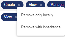 An access right can be removed by clicking the "x" on the right to be removed. Clicking the "x" opens the following pop-up window. Here you can select whether the access right is only to be removed locally or whether all legacies (related to sub-Tenants) are to be removed.