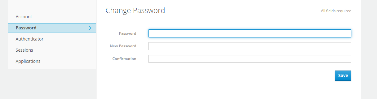 The password can be changed via the "Password" selection field. To do this, the old and new password must be entered and then confirmed again.