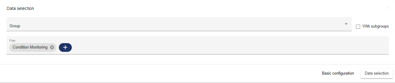 In the data selection, you can use Entity-Select to select which Events are to be displayed. The following three options are available for selecting the data: