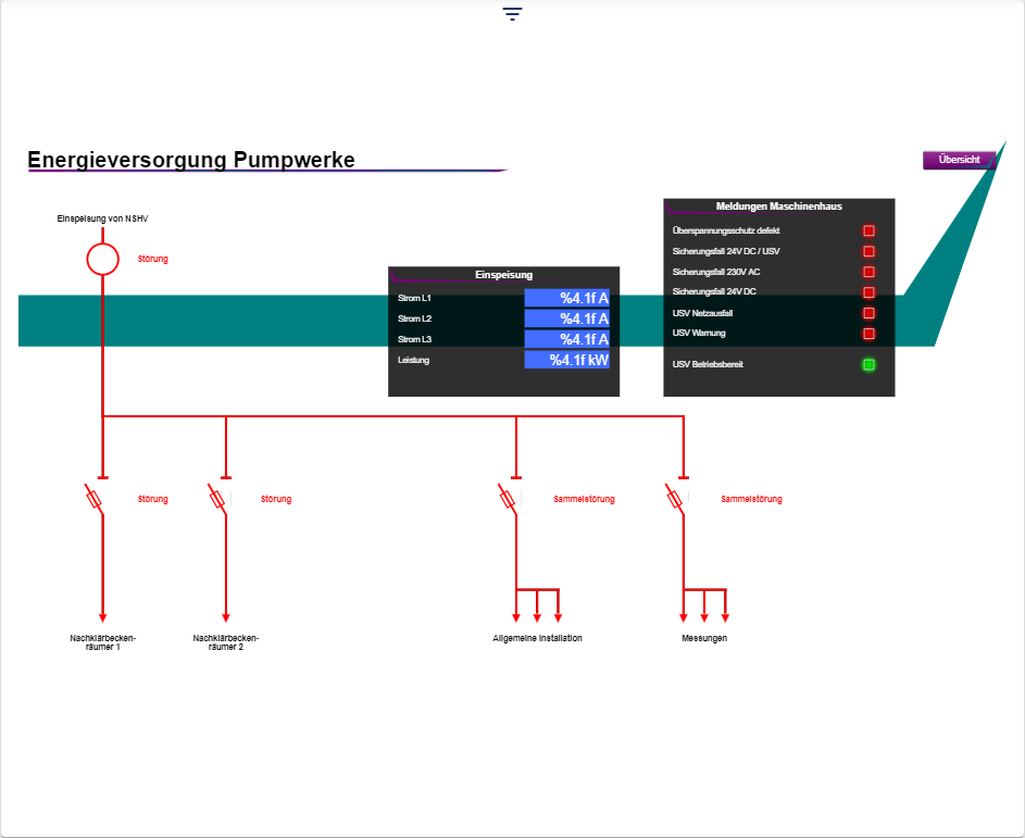 This widget can be used to include an animated interactive process image in the Dashboard. Process images can be created individually with the help of the Animation Manual. You can find examples of this in the area below.