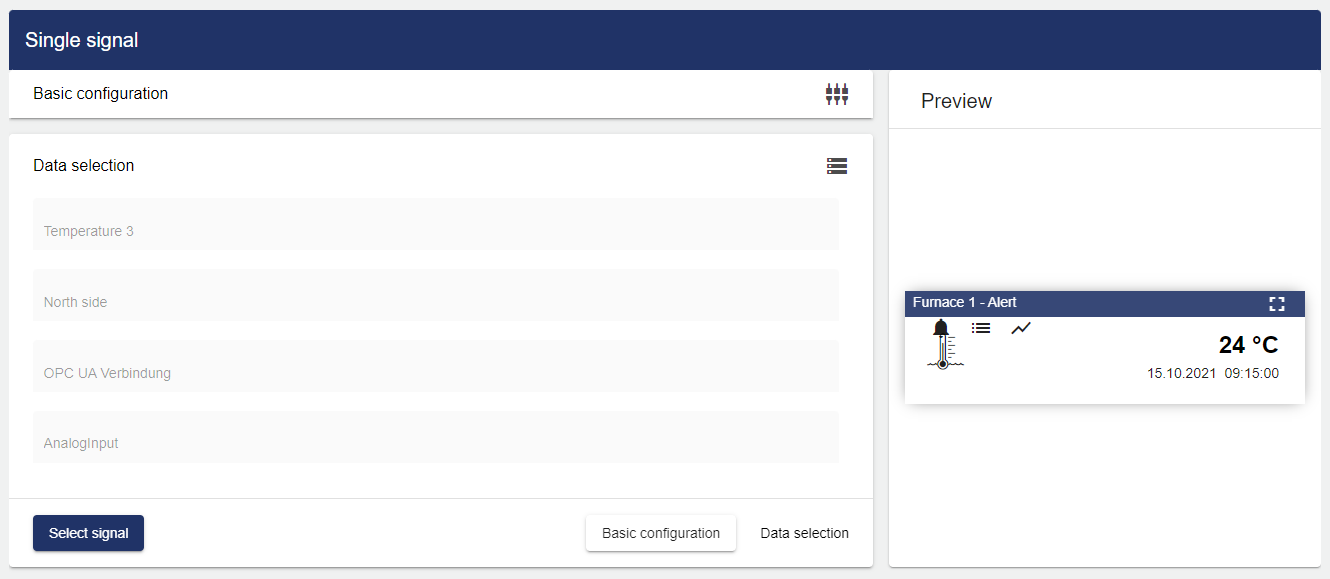 After you select a signal, a preview window opens. The finished configuration is displayed in this preview.