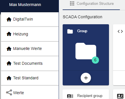 Using "DigitalTwin", a Group is created that adopts the combined settings of both "Standard" and "Documents". The Group is configured via the configuration structure. Documents can be uploaded via the "Documents" button.