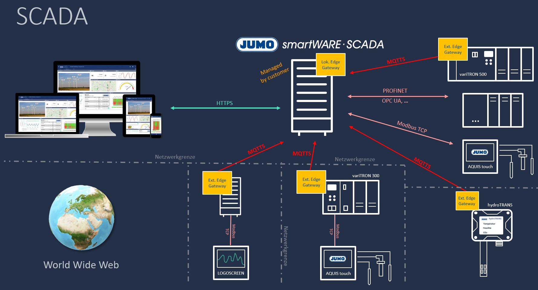 Each JUMO variTRON includes "onboard" an edge gateway more precisely a Cloud Gateway for JUMO Cloud and JUMO smartWARE SCADA applications.