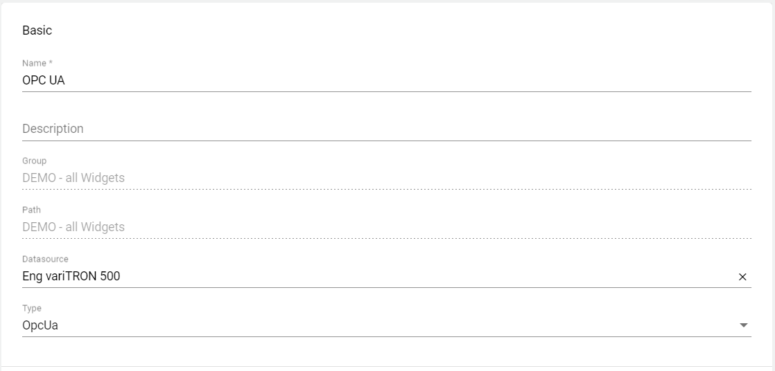 Assign a name for the signal, select the signal type, assign the Datasource and connection and browse the OPC UA value of the variTRON signal.