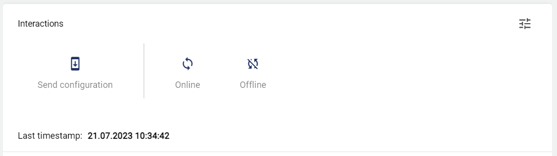 Select the "Send Configuration" button via "Interactions" and save → confirmation now appears that the information was sent. The JUMO smartWARE SCADA settings have now been transmitted to the variTRON device.