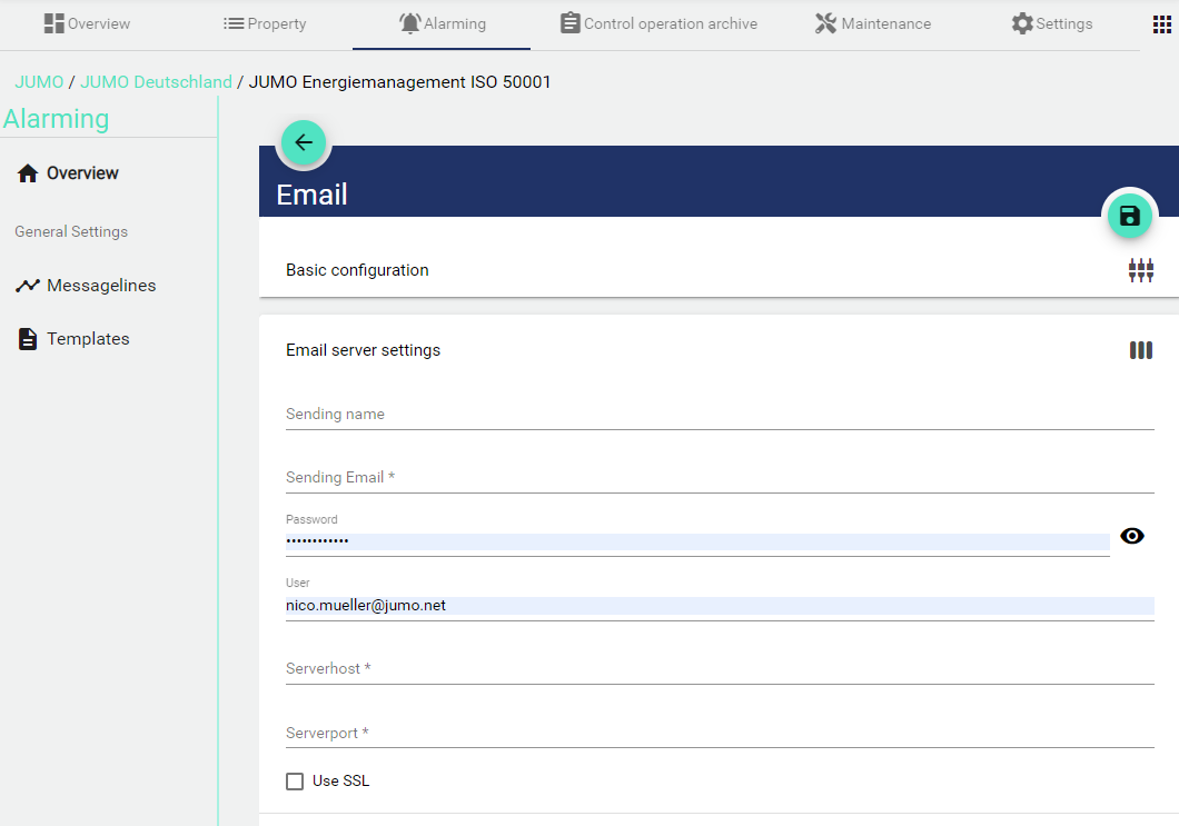 Own alerting services can be configured within a tenant. Optionally, the set service can also be inherited by sub-tenants.