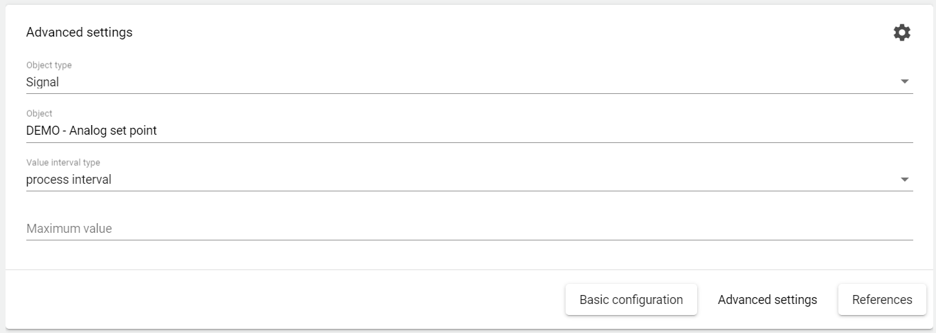 Maximum Monitoring: The signal values (or formula values) from the selected "Object" must exceed the set "Maximum value" in the selected "Interval type" so that an event or alarm is triggered.