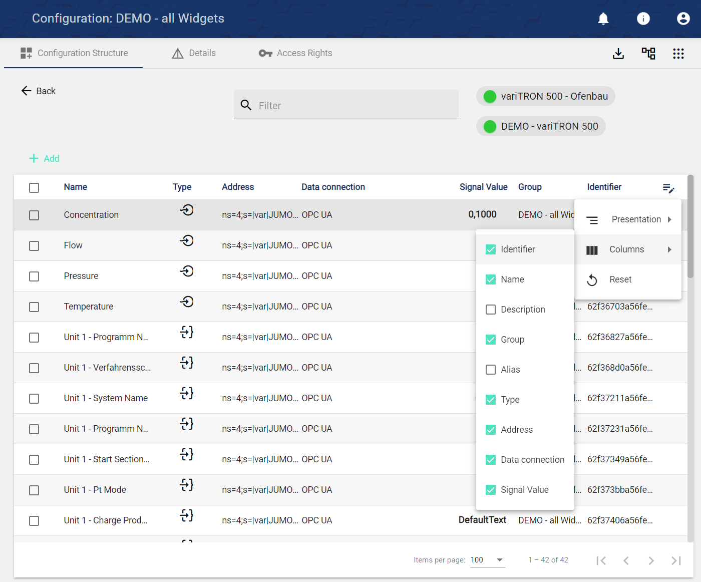 With the function SignalAccess.GetValue({SignalID}): number | string the current live value of the signal specified by the parameter can be read out. The value is returned as a number or string. If the signal does not exist or the parameter {SignalID} is empty, zero is returned.
