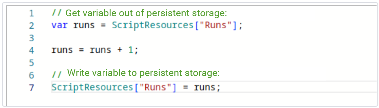 There may be times when you want to persistently store certain variables or values {message} to use them the next time you run the script. This is made possible by the objectScriptResources[{Message}].