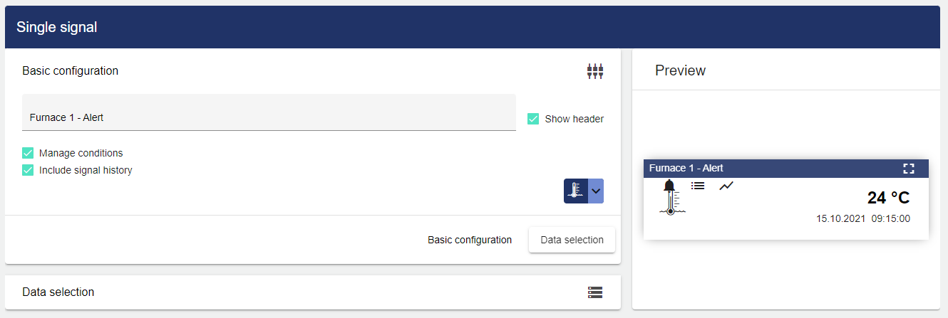 After you select a signal, a preview window opens. The finished configuration is displayed in this preview.