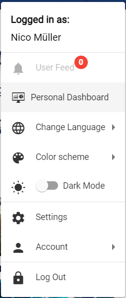 9.) The Personal Dashboard has been additionally linked in the user menu, so that users can access their personal dashboard much faster.