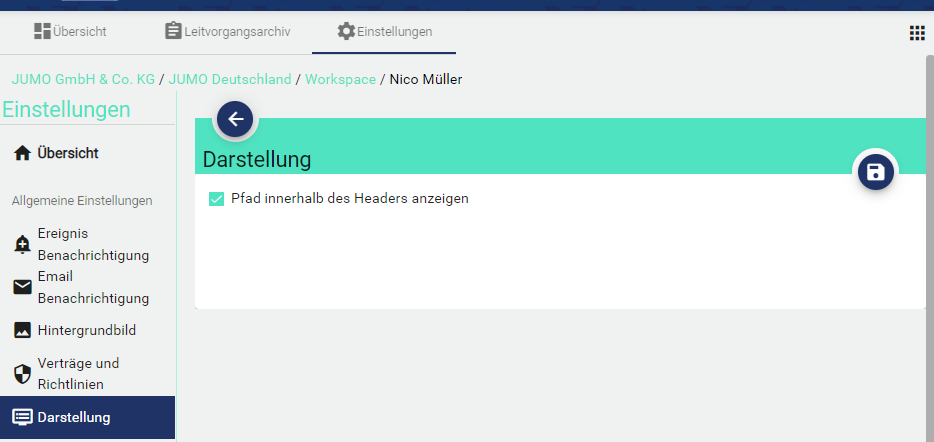 1.) In the Administration of a Client under Presentation, you can specify whether the entire path should be displayed in the header of the Dashboards. By default, the first Groupname and the respective Dashboard are always displayed.