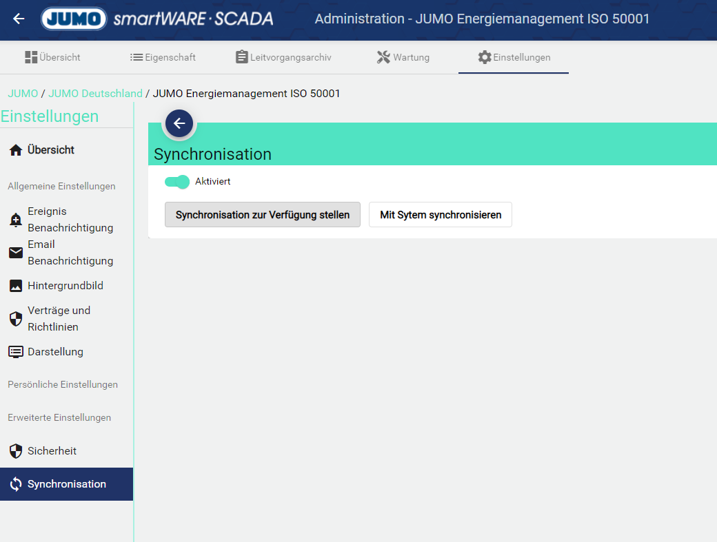 Synchronization of a Client adjustable in Administration: Synchronisation