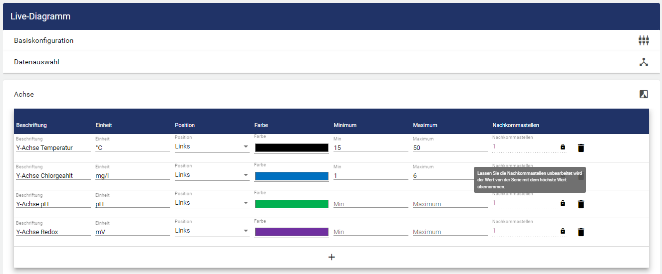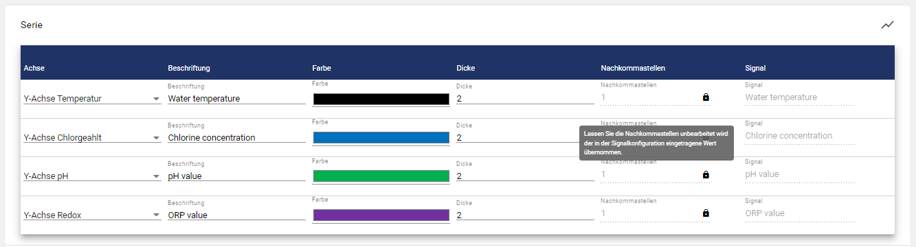 3.) In the Widget: XY-Chart and the Widget: Live-Chart, in the Axis and Series tab, the decimal places from the previously configured Signal in Axis and Series are automatically adopted from the configuration. However, an individual change is possible in the configuration of the widget.