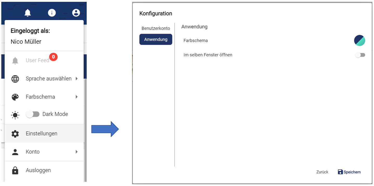 8.) Increase of user-friendliness by changing Header: smartWARE SCADA Menu and User Profile