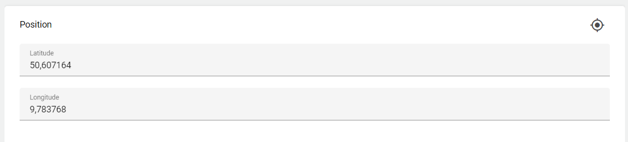 Here the location of the Gruppe (system) can be specified in terms of longitude and latitude. This location can be used within the Widget: Landkarte.